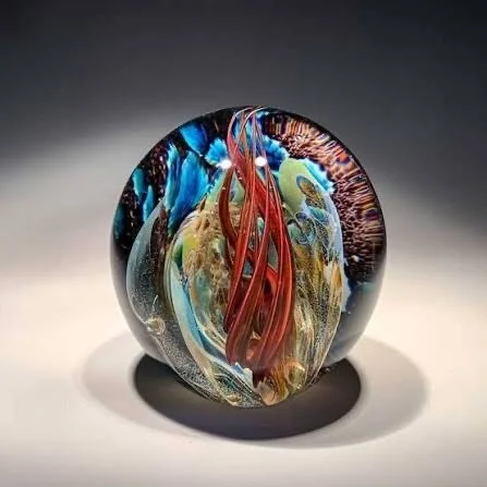 In this workshop, students will be guided through the steps to make paperweights that contain a variety of colorful and interesting glass inclusions. Inclusions will be encased before forming the glass into classic paperweight shapes. No glass working experience is required.